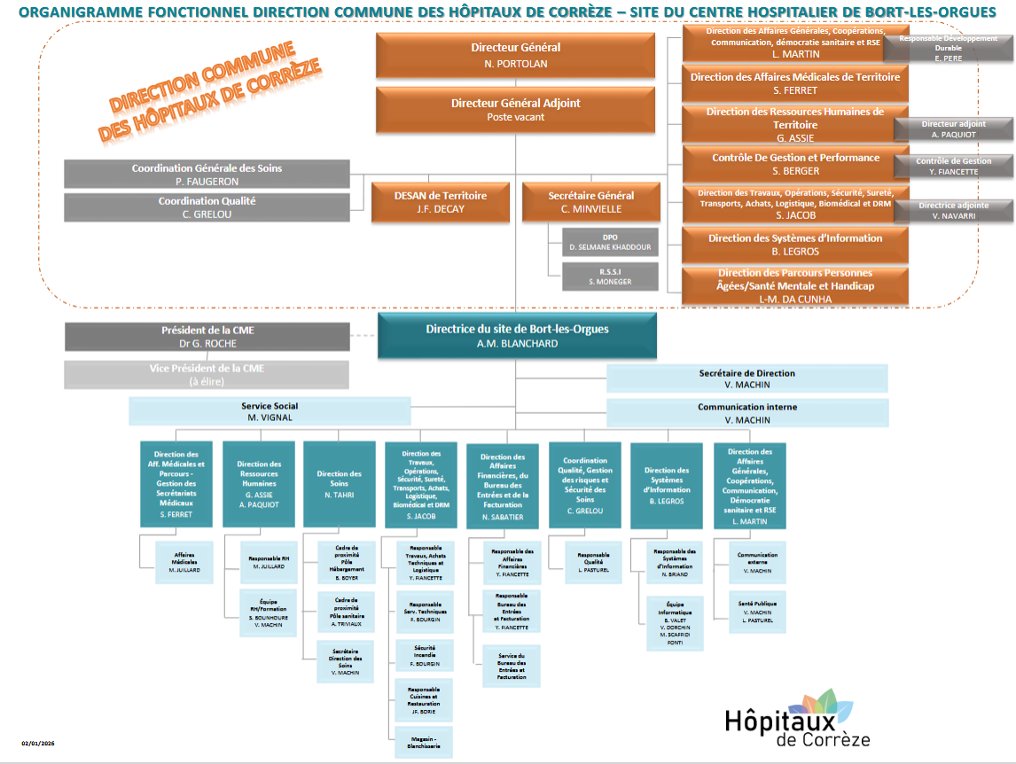 L'établissement fait partie, depuis le 2 mai 2024, de la direction commune des hôpitaux de Corrèze qui regroupe les Centres Hospitaliers de Brive, Tulle, Ussel, Bort-les-Orgues et les EHPAD du Pays de Brive et d’Eygurande.